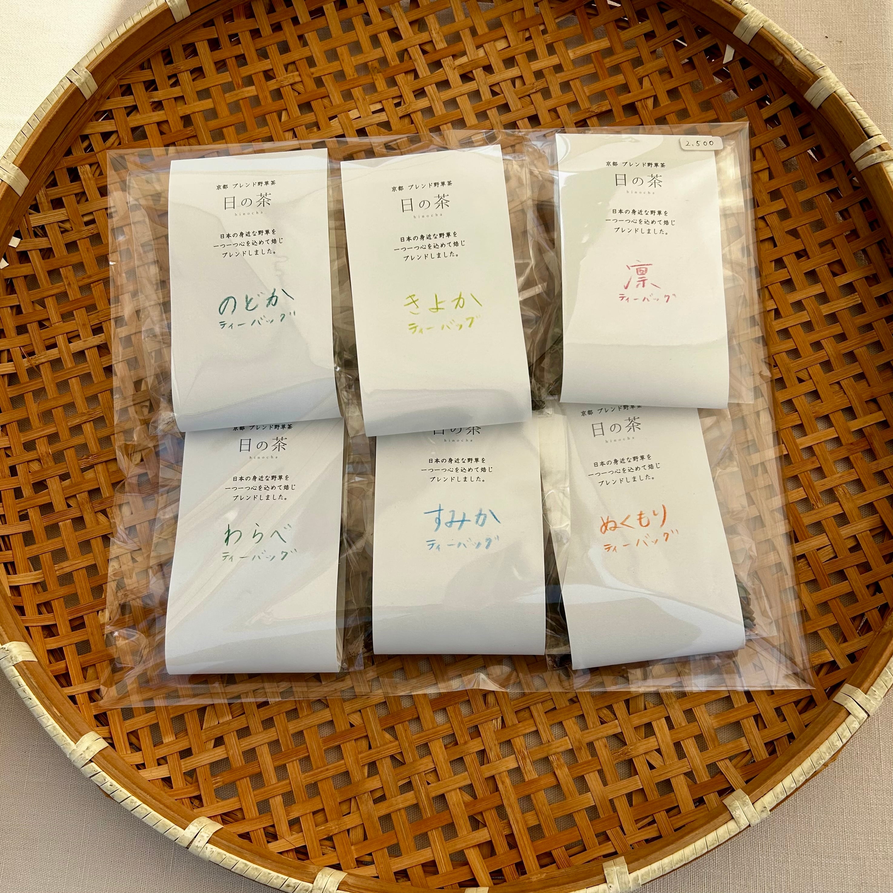 ブレンド野草茶を試してみたいけど、どんな味か分からない、試してみたというあなたのために、日の茶のブレンド野草茶の通年販売している6種類、お試しサイズ(それぞれソイロンティーバッグ2つずつ)をセットにさせていただきました。